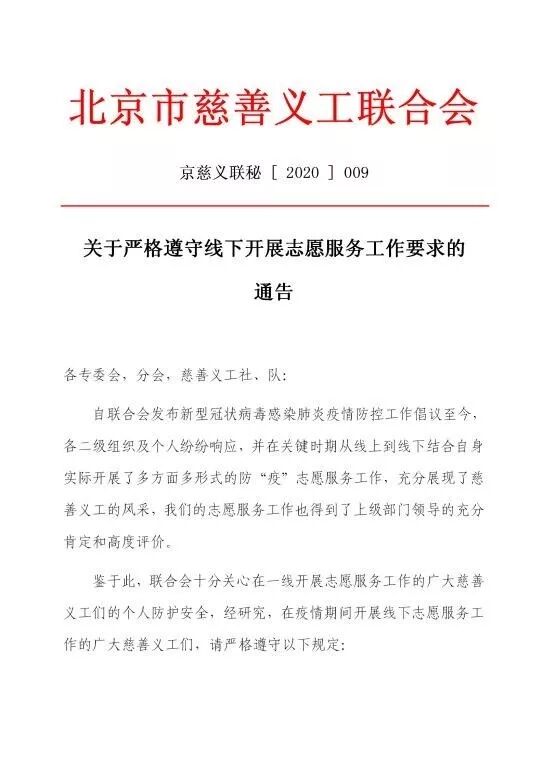 目前参与疫情防控的慈善义工已超过 50 万人次,其中有专业的救援人员、政府机关的公职人员、学校老师、退休职工、律师、司机、工程师、演员等。在慈善义工中,最小的慈善义工年仅 5 岁,在家通过网络发表宣言,鼓励大家积极向上、互相帮助,最年长的则有年近八旬的慈善义工,他们用自己微薄之力帮助社区有需要的人。全市各行各业的慈善义工在北京的各个角落,用实际行动支持着慈善义工联合会的疫情防控工作,用实际行动维护着战“疫”下北京的平安。